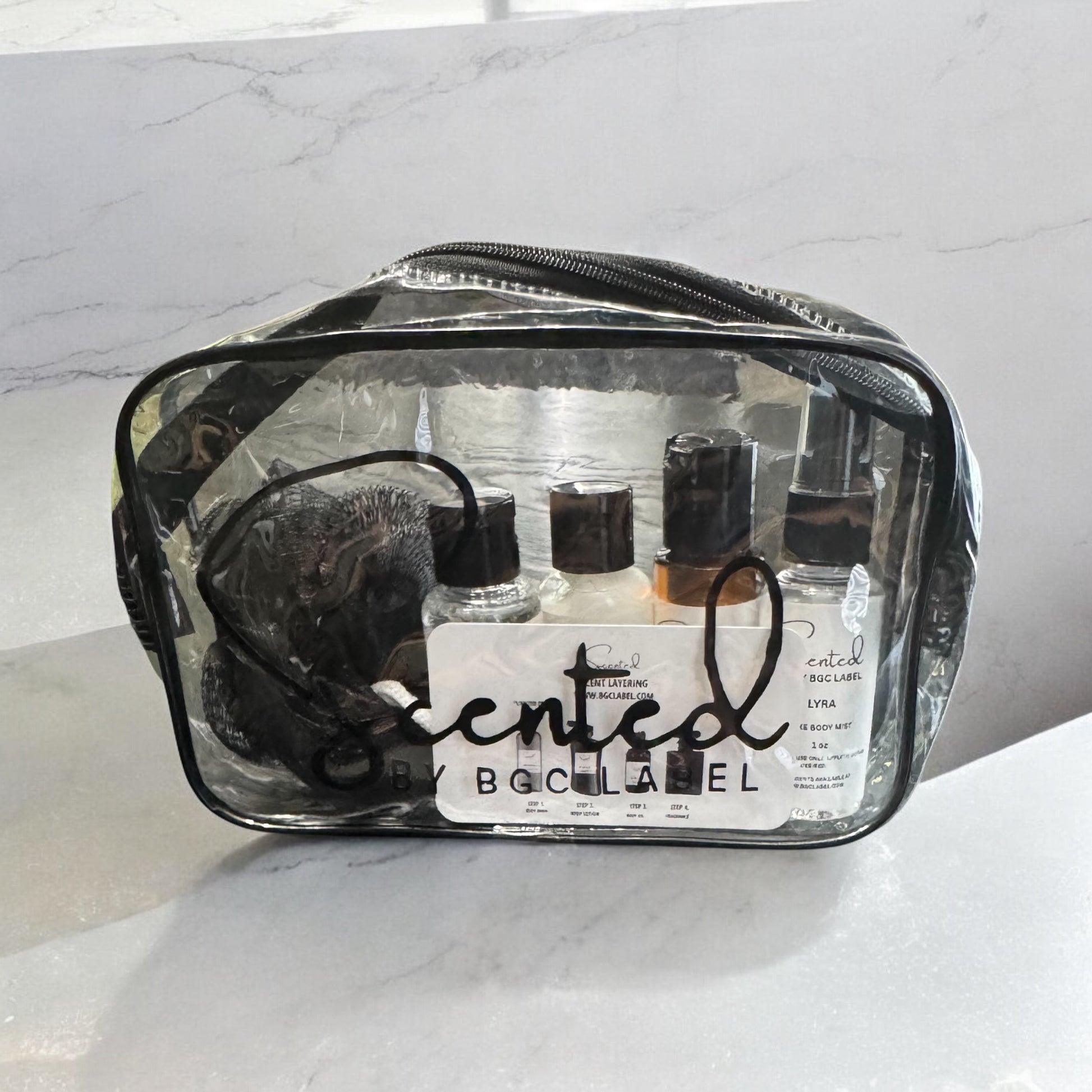 Travel light, glow everywhere. Our Scented Mini Trio is the ultimate way to experience your favorite scents on the go. Each set comes in a chic clear travel pouch and includes: